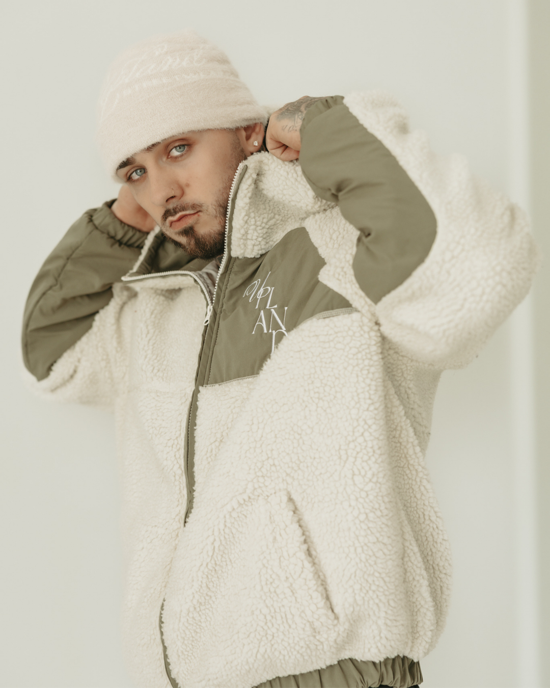 Pistachio Color Block Sherpa Fleece Jacket